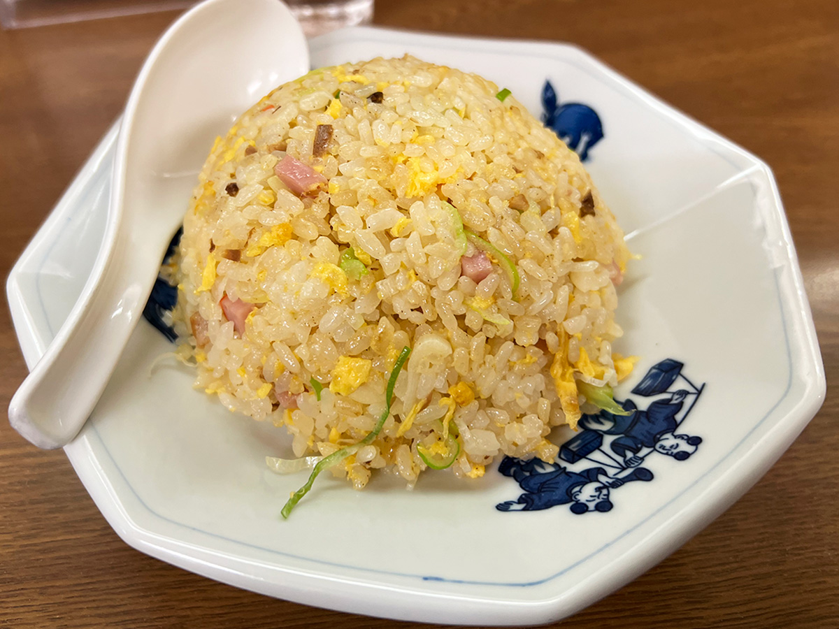 続いて運ばれてきたのが、チャーハン。これがまた王道中の王道。「これぞザ・チャーハン!」と叫びたくなるような懐かしい味わいです。パラッとした炒め具合で、香ばしい風味が口の中に広がり、食べ進める手が止まりません。思った以上にボリュームがあり、「半ラーメンも頼んだから、半チャーハンでもよかったかも」と思いつつも、しっかりと味わい切りました。食べ終えた後の満足感は、まさに町中華の醍醐味。